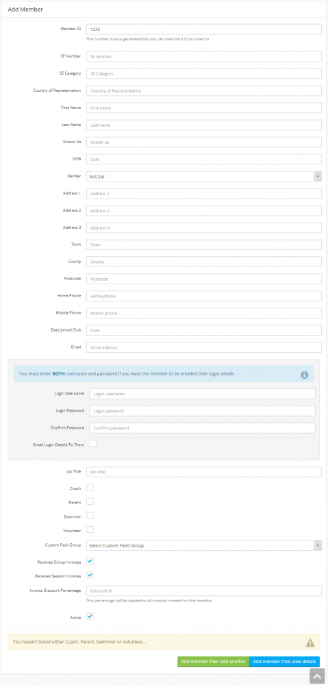 You can add extended details and sessions etc once you have added the member's basic details.