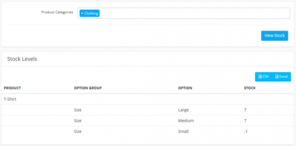 Select a category and click the "View Stock" button.