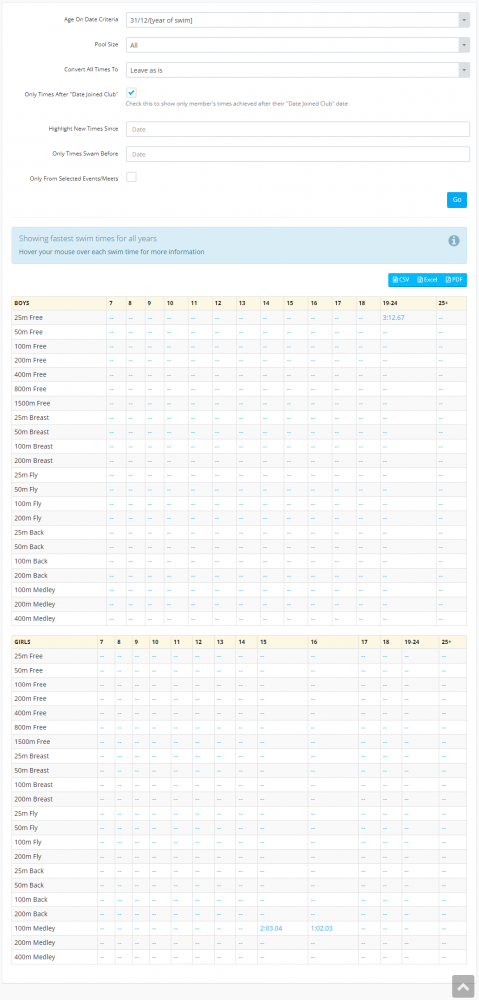 Fastest Club Swim Times