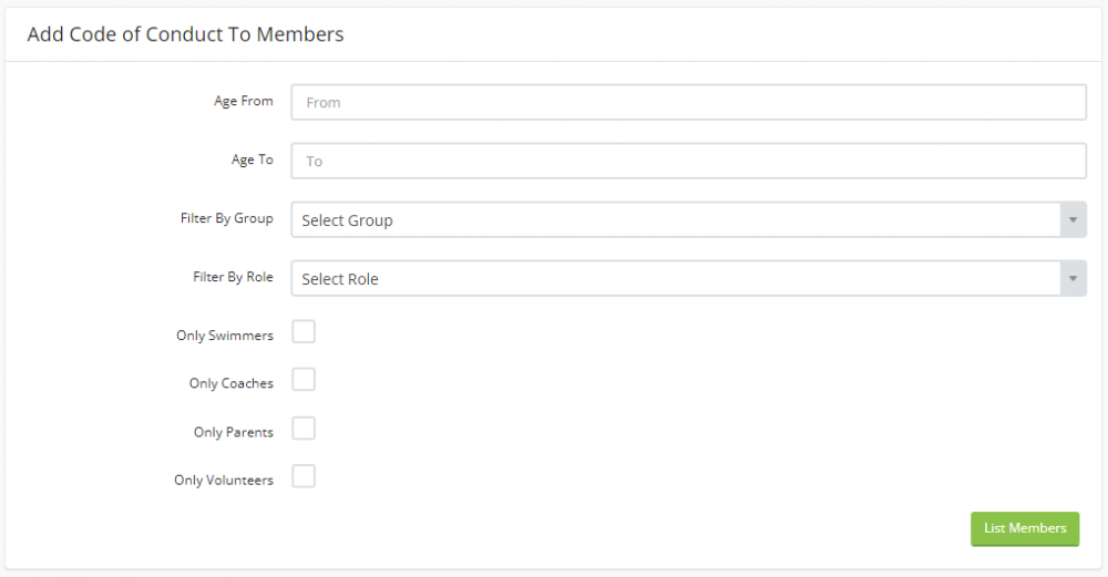 Use the fields on the form to filter your members, then click the "List Members" button.