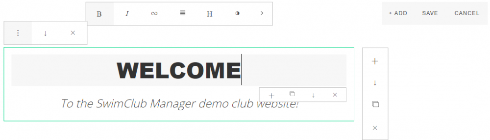Once a section has been dropped onto the page, to edit it, click into it with your mouse.