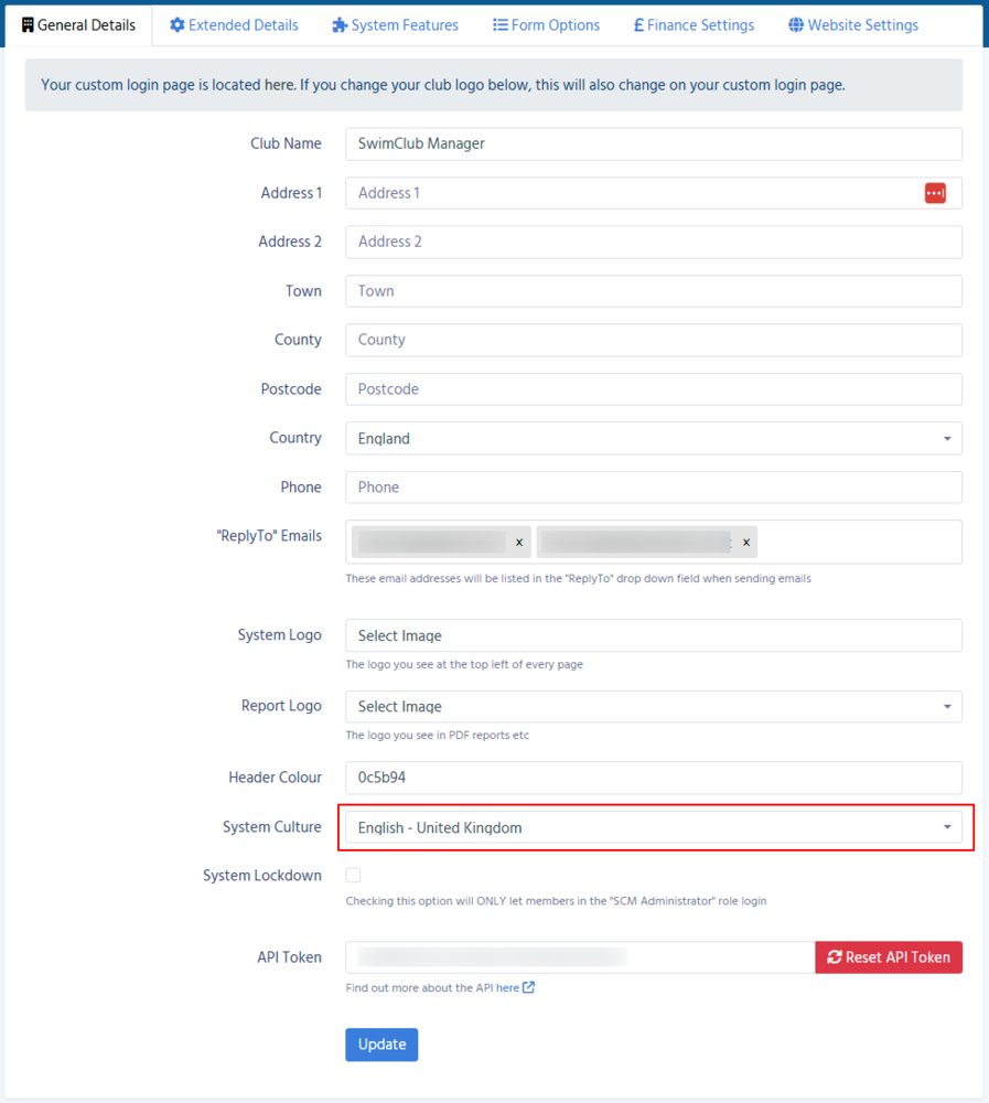To change this, go to "Setup > Club > Details" and change the "System Culture" setting on the main details tab.