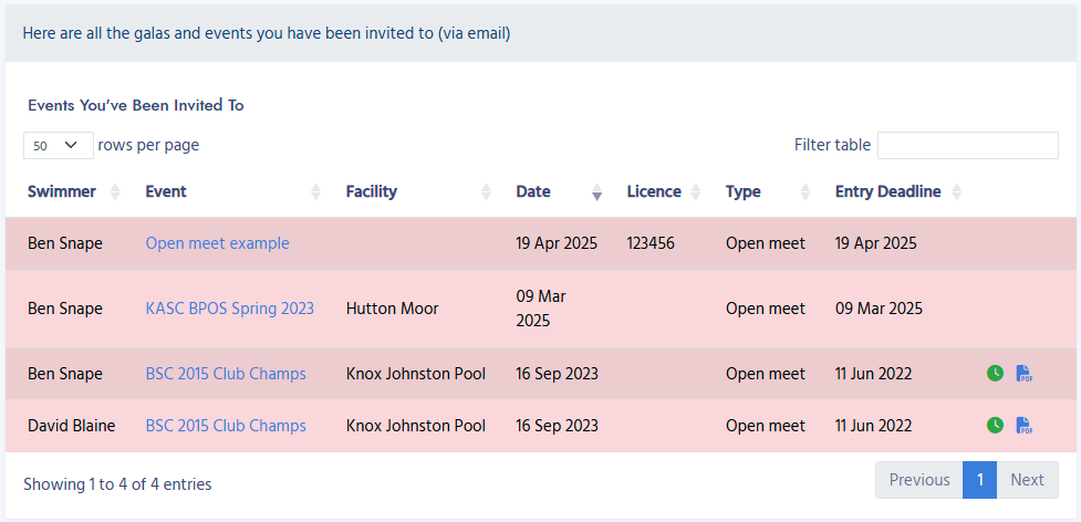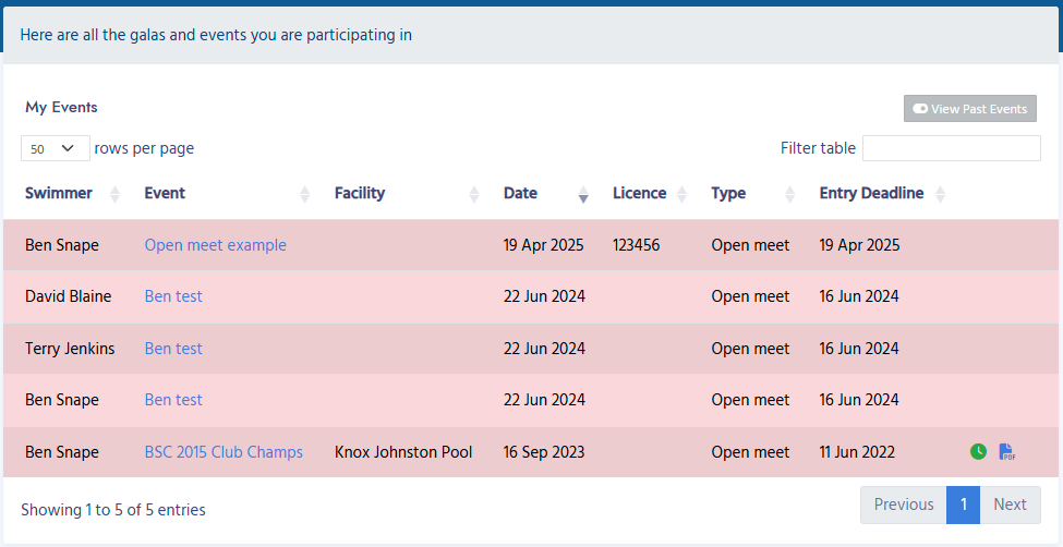 Click on the event to confirm your attendance and select the events you want to swim (depending on event type).